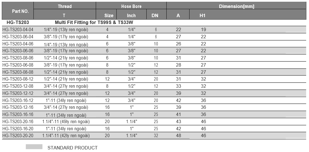 Khớp nối ống cồn lồi 24 độ (Thẳng)