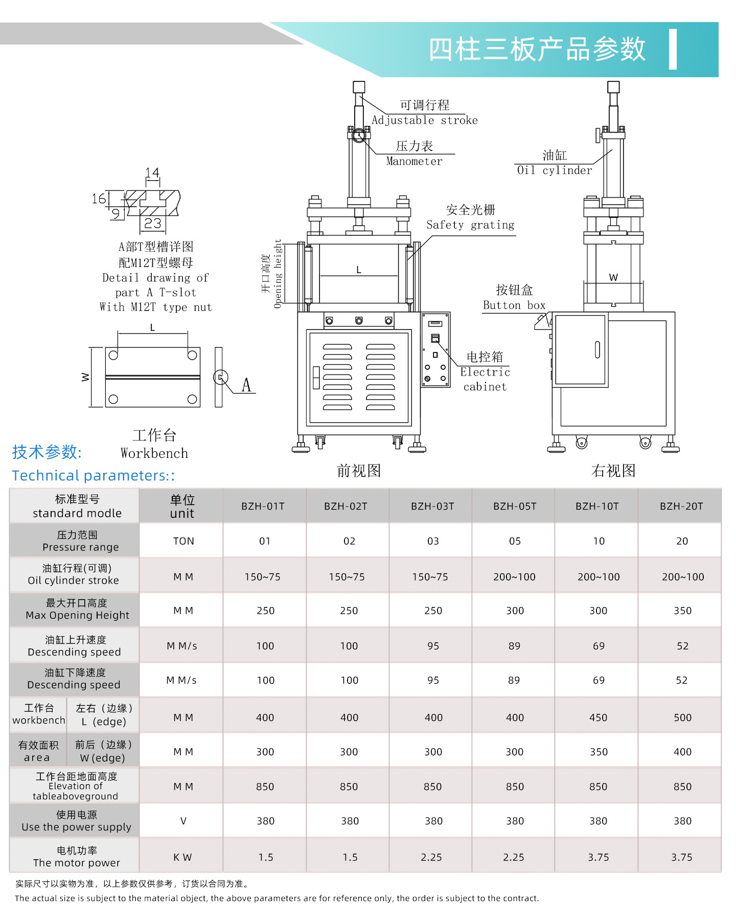 Bàn ép (bàn làm việc): Gồm bàn cố định dưới và bàn chuyển động trên; có thể trang bị khuôn mẫu hoặc gá kẹp tùy theo mục đích sử dụng.