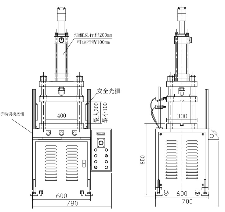 Kích thước bàn ép: 500 x 600 mm đến 1500 x 2000 mm